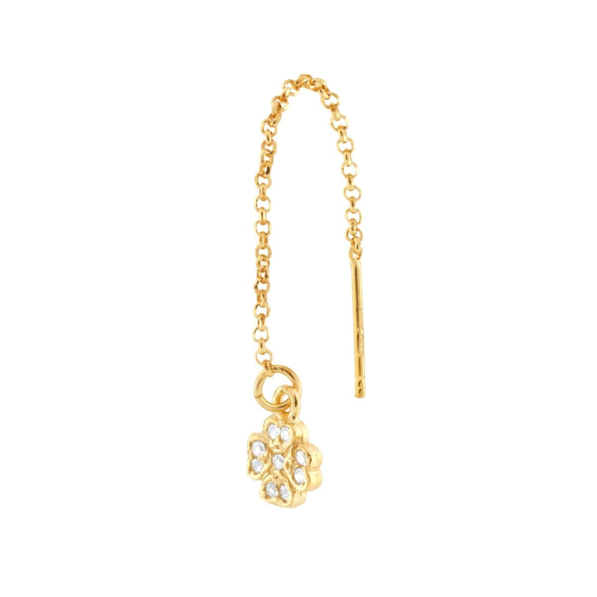 Orecchino ago con filo catena Rolò con accessorio a forma di Quadrifoglio con cubic zirconia bianchi incastonati.