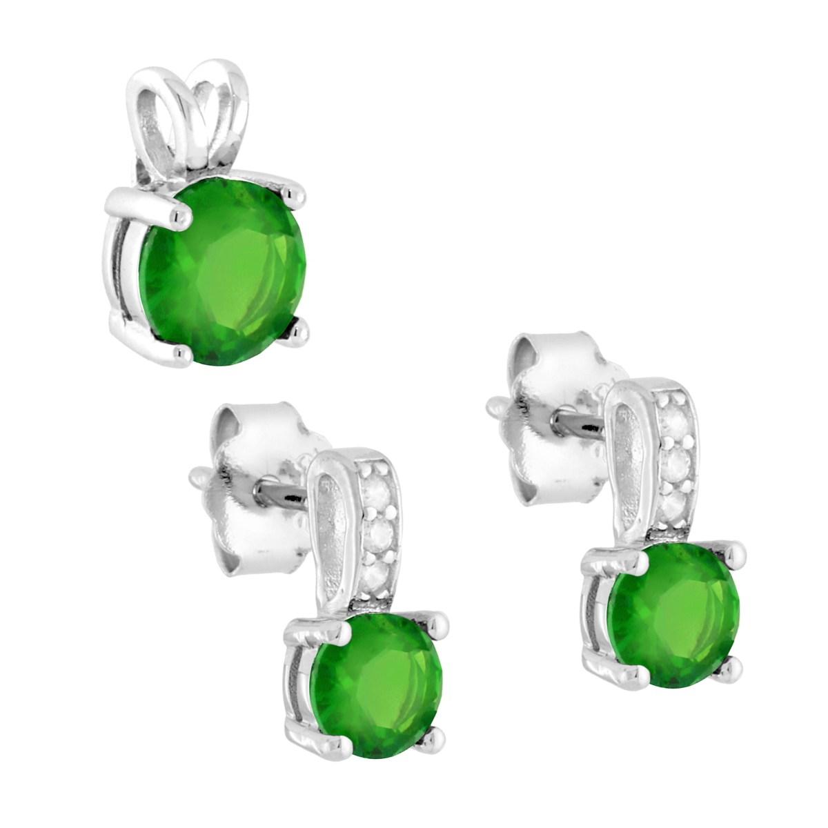 Parure Set Orecchini e Ciondolo Punto Luce Tondo Verde Smeraldo con Cubic Zirconia Bianchi in ARGENTO 925 Galvanica Rodio